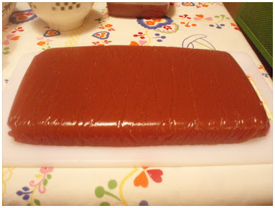 Eu cortei alguma marmelada aos quadradinhos, e embrulhei em papel vegetal, pois assim fica mais bonito para servir no prato, como sobremesa com maçã e queijo.