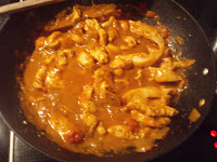 Depois colocar o molho balti e deixar cozinhar emn lume brando durante 15 mn, mexendo de vez em quando.