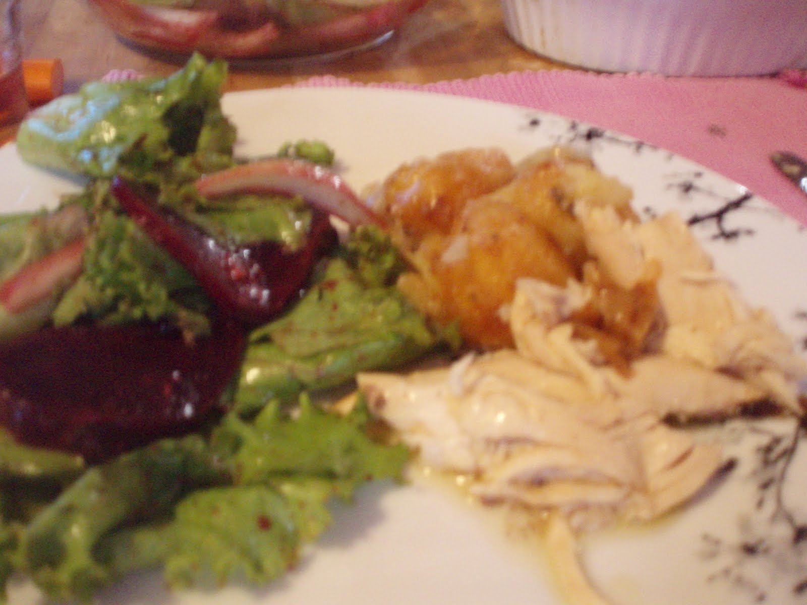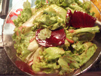 Acompanhei com salada de alface, beterraba e coentros com molho vinagrete