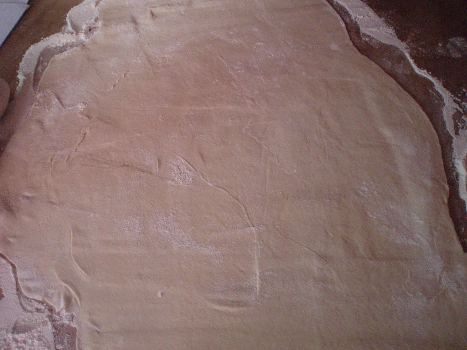 Estenda a massa em forma de rectângulo e por cima coloque as carnes frias e o queijo.