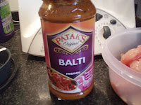 O molho já comprei pronto, é da marca Patak´s http://www.pataks.co.uk/products/balti-cooking-sauce.aspx e há venda no Continente.