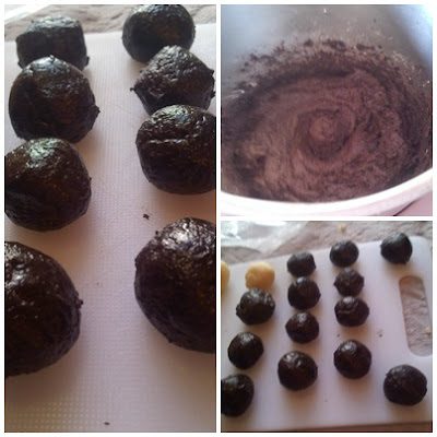Moldar bolas de tamanho semelhante e levar ao frigorifíco, pelo menos uns 45mn.